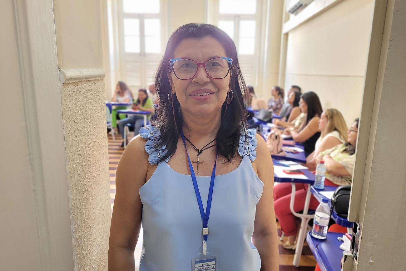 Esther Braga, formadora da equipe de implementação do Tempo Integral da Seduc'Escola da Escolha' - "Essa Formação do Projeto de Vida, que é uma iniciativa do Governo, via Seduc, é muito importante para esses professores, para que eles se apropriem da metodologia trabalhada por meio da 'Escola da Escolha', porque eles podem se apropriar de instrumentos para que trabalhem os projetos de vida dos estudantes durante o período em que eles estiverem ministrando as suas aulas. Aqui temos professores, coordenadores e algumas pessoas que fazem parte da equipe técnica das DREs, para que isso se ative de uma forma mais apropriada possível", explicou a formadora da equipe de implementação do Tempo Integral da Seduc, Esther Braga.