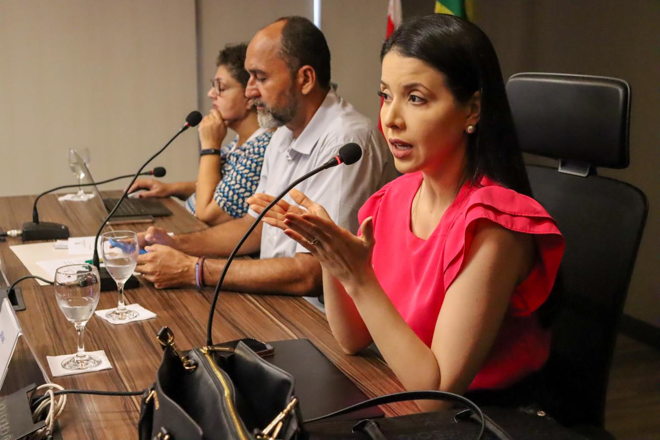A diretora de Mudanças Climáticas da Semas, Renata Nobre, informou que a Câmara Técnica de Redd+ faz parte do Comitê Gestor do Clima (Coges-Clima) e funciona como instância de governança climática, sendo um espaço consultivo e deliberativo. “A Câmara Técnica funciona como um espaço de debate e amadurecimento acerca dos componentes desenvolvidos no projeto. Hoje, trouxemos para o debate o avanço dos últimos meses de trabalho em torno da elaboração do marco jurídico, e contamos aqui com as contribuições de todos em relação ao que se pretende executar”, disse a diretora.