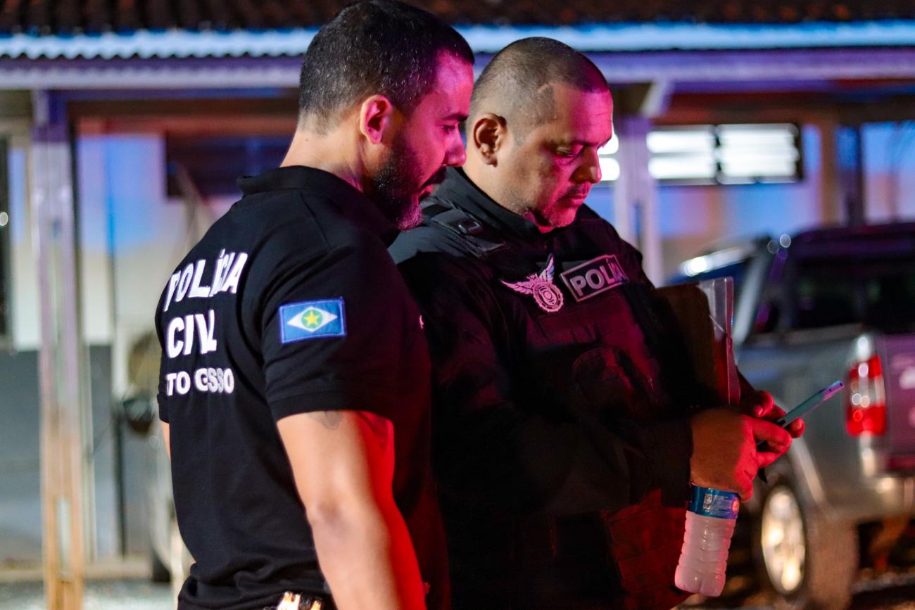 INTEGRAÇÃO - Cerca de 40 policiais, divididos em 12 viaturas, deram cumprimento aos mandados. Agentes da Delegacia Especializada de Repressão a Crimes Informáticos (DCDI), da Gerência Estadual de Polinter e Capturas (GEPOL), Gerência de Operações Especiais (GOE), Gerência de Combate ao Crime Organizado (GCCO), Delegacia Especializada do Meio Ambiente (DEMA) e Delegacia de Repressão a Entorpecentes (DRE) da Polícia Civil de Mato Grosso (PCMT) deram apoio.