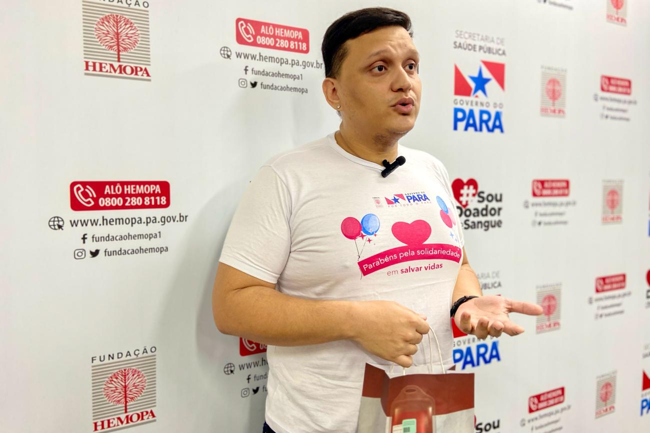 Yuri foi um dos vários aniversariantes que contou com a equipe do Hemopa para festejar mais um ano de vida. “A doação de sangue é muito importante, porque você sempre vê pessoas precisando por motivos de acidentes, tratamentos de saúde, cirurgia, e, eu acho que é um tão singelo e tão simples que a gente acaba deixando para depois, então, eu convido todo mundo a fazer essa doação de sangue aqui no Hemopa”, comenta o profissional da educação.