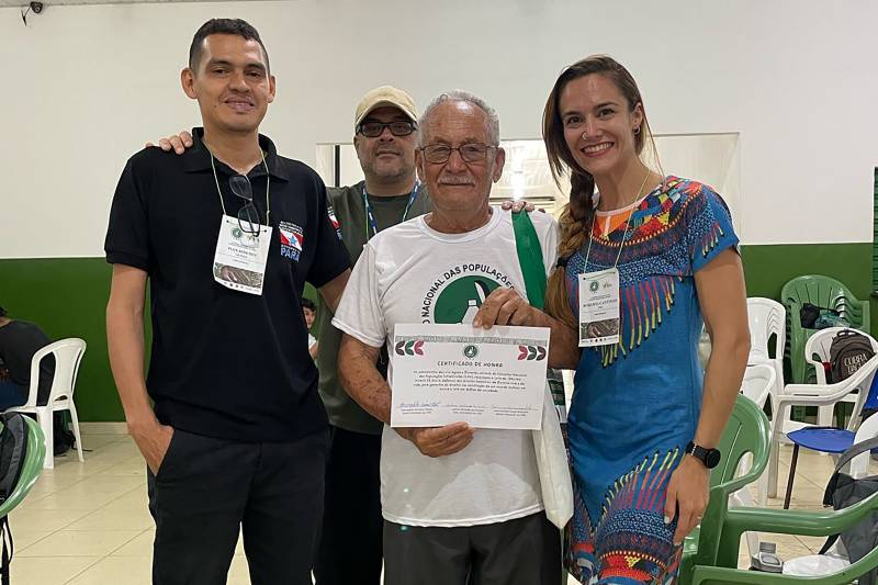 Homenagem - Durante o evento foi entregue um certificado de honra a Idalino de Assis, morador da Resex Verde para Sempre e ex-presidente do Sindicato dos Trabalhadores e Trabalhadoras Rurais de Porto de Moz (STTR), por sua longa trajetória de quase 40 anos de luta em defesa dos direitos e interesses das comunidades extrativistas do Pará.