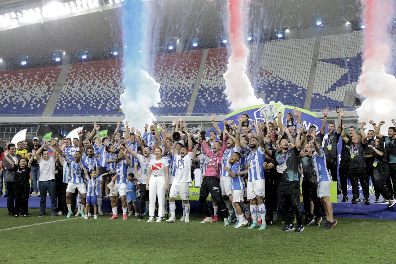 Paysandu festeja no Novo Mangueirão a conquista do seu 50º título de campeão do futebol paraense A Cultura Rede de Comunicação premiou, neste domingo (14), atletas de diferentes categorias e times que disputaram o Parazão Banpará 2024, com o Troféu Meio de Campo, logo após a partida entre Remo e Paysandu, válida pela final do campeonato, no Estádio Olímpico do Pará Jornalista Edgar Proença, o Novo Mangueirão, em Belém. A escolha foi feita pelos torcedores paraenses, por meio de votação aberta no Portal Cultura do Pará.