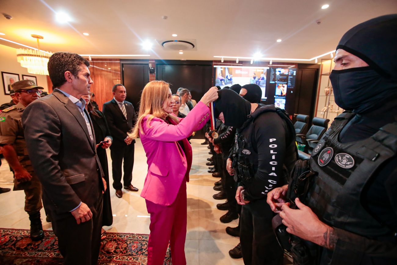 "O resultado desta operação é uma demonstração da capacidade técnica, da capacidade investigativa, da capacidade operacional, da capacidade ostensiva de cada um de vocês, mas também dos valores que vocês alimentam. São profissionais e trabalhadores como vocês, que orgulham a farda e a instituição que vocês atuam", ponderou o governador durante a entrega das condecorações.