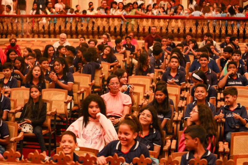 Cerca de 700 estudantes de escolas da rede estadual e municipal de ensino foram ao Theatro da Paz, em Belém, para assistir a um concerto, na segunda-feira (15). Os estudantes do Ensino Fundamental e Médio da Secretaria de Estado de Educação do Pará (Seduc) foram convidados para participar do projeto "Concerto Didático", realizado pela Fundação Carlos Gomes (FCG) em parceria com o Theatro da Paz, para aproximar crianças e adolescentes à cultura paraense.