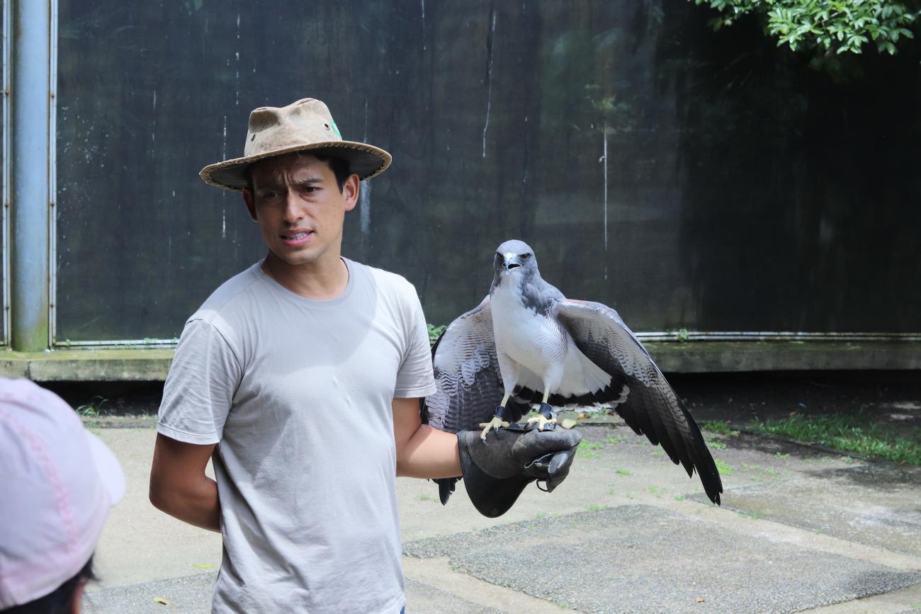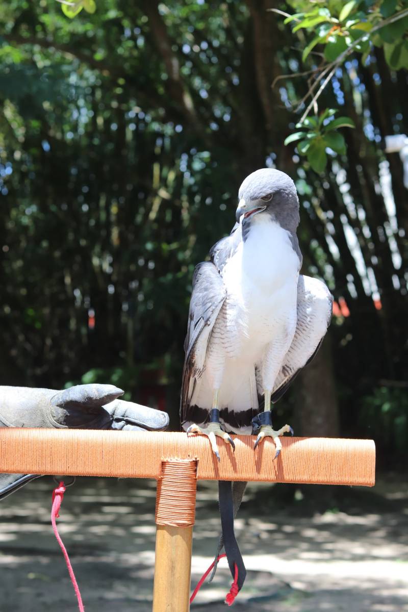 Segundo Camilo Gonzáles, médico veterinário do Parque, a falcoaria permite um manejo mais tranquilo e uma maior liberdade para que a ave possa expressar seus comportamentos naturais, dentro das limitações que cada uma possui. Um exemplo disto é o trabalho desenvolvido com o gavião de cauda branca (Geranoetus albicaudatus) conhecido como Alba.