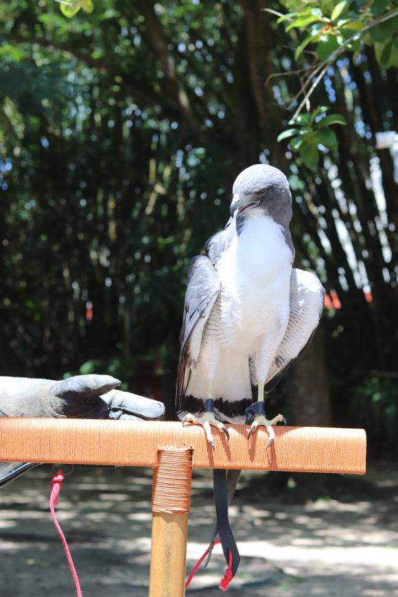 Desde 2020 o Parque Zoobotâncio Mangal das Garças vem desenvolvendo um trabalho de acolhimento de aves de rapina, machucadas ou órfãs, que chegam ao local por meio dos órgãos ambientais. Muitas dessas aves apresentam fraturas, principalmente nas asas ou pernas, são cegas ou chegam ainda muito filhotes, sem condições de sobreviver na natureza, e, por isso, precisam ficar definitivamente sob cuidados profissionais dentro do Mangal. Com o intuito de proporcionar bem-estar para estes moradores permanentes, o Parque está incorporando a arte da falcoaria no manejo das aves, uma prática milenar para desenvolver relação de confiança entre o ser humano e o rapinante.