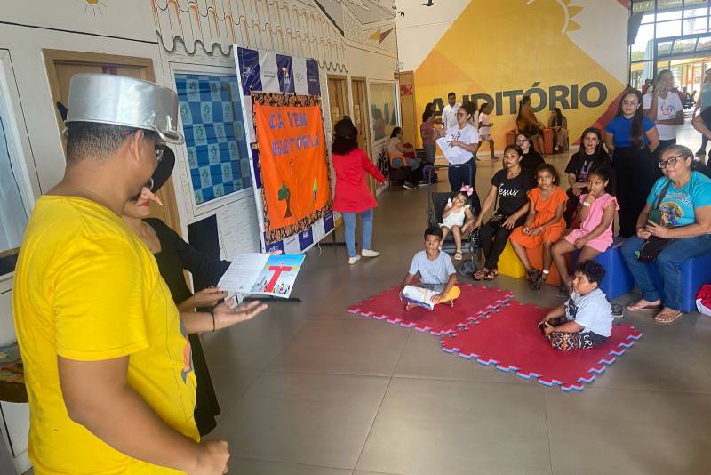Organizado pelo setor de Arte e Cultura em meio aos serviços de saúde ofertados, o evento de hoje, 18, no CIIR teve contações de histórias em formato bilíngue; oral conduzido por Hellayne Sousa que contou a obra "Flicts", e a "cada um mora onde pode", sendo contada por meio da Língua Brasileira de Sinais (Libras) interpretada pelo profissional surdo, Luãn Tavares, ambos recreadores do Arte e Cultura. O evento ainda realizou uma exposição das principais obras produzidas por Ziraldo.