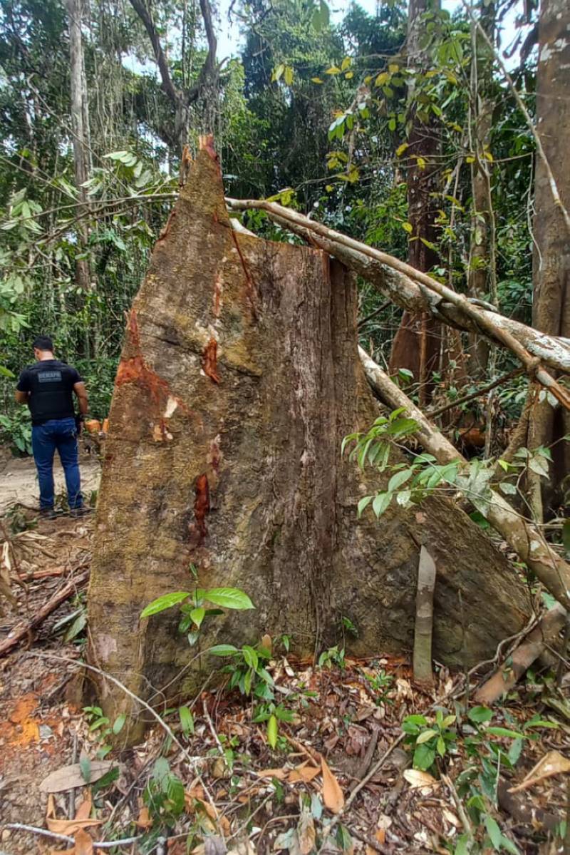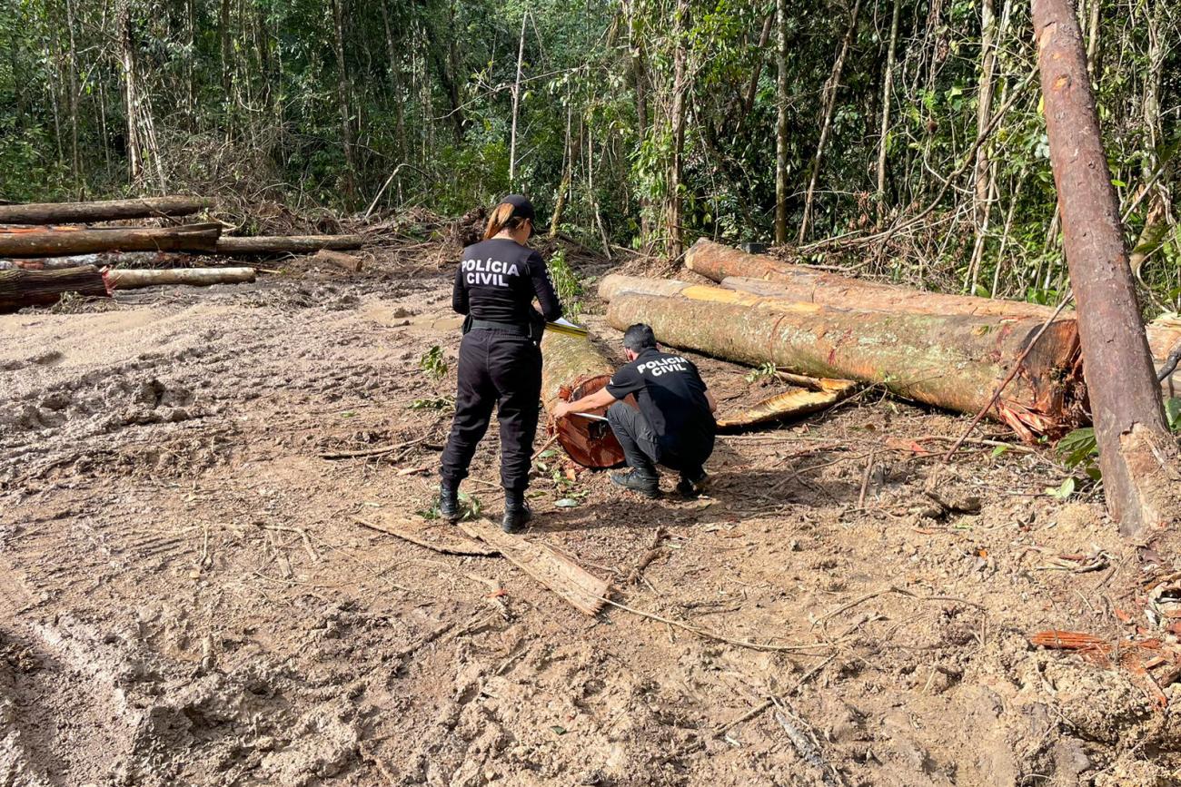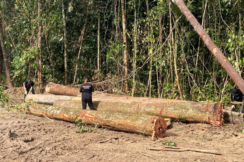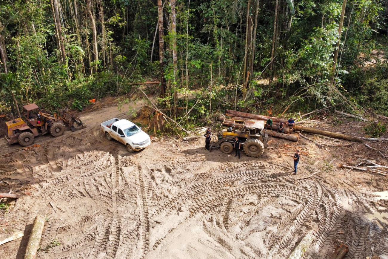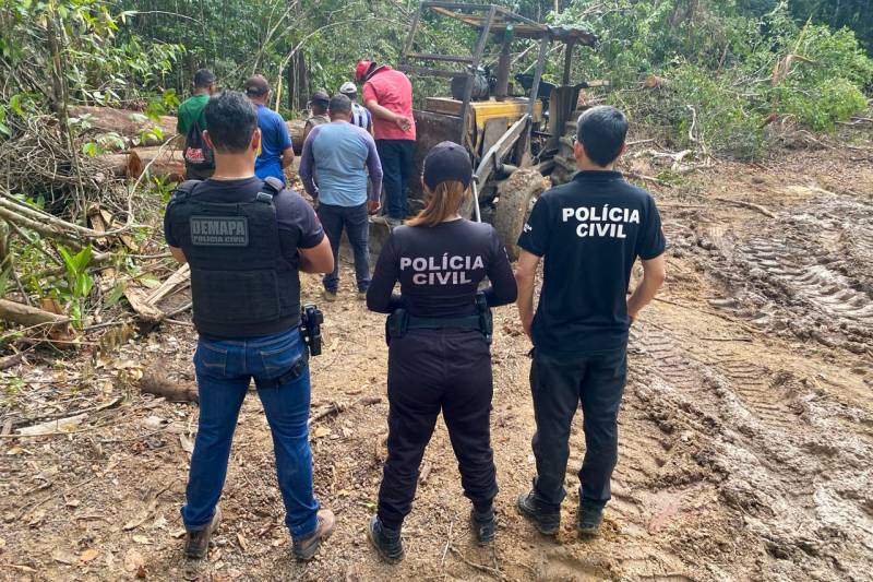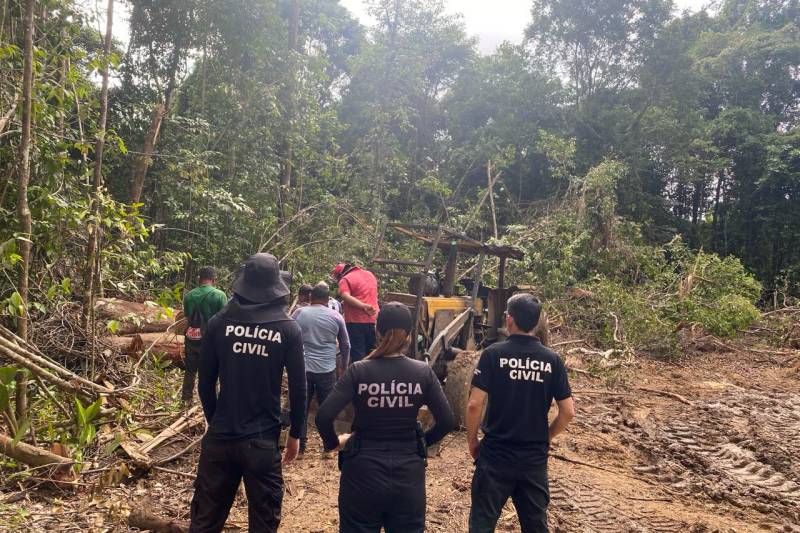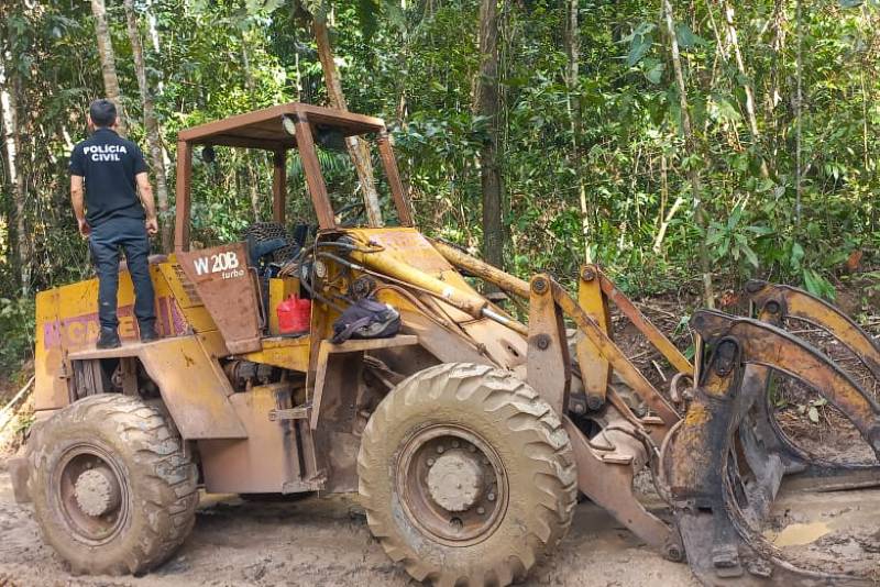 "No local, nossas equipes encontraram e apreenderam um trator, uma máquina carregadeira, motosserras e um caminhão carregado com 35 metros cúbicos (m³) de madeira, além de 19 toras prontas para serem carregadas", informou Walter Resende, delegado-geral da Polícia Civil do Pará.
