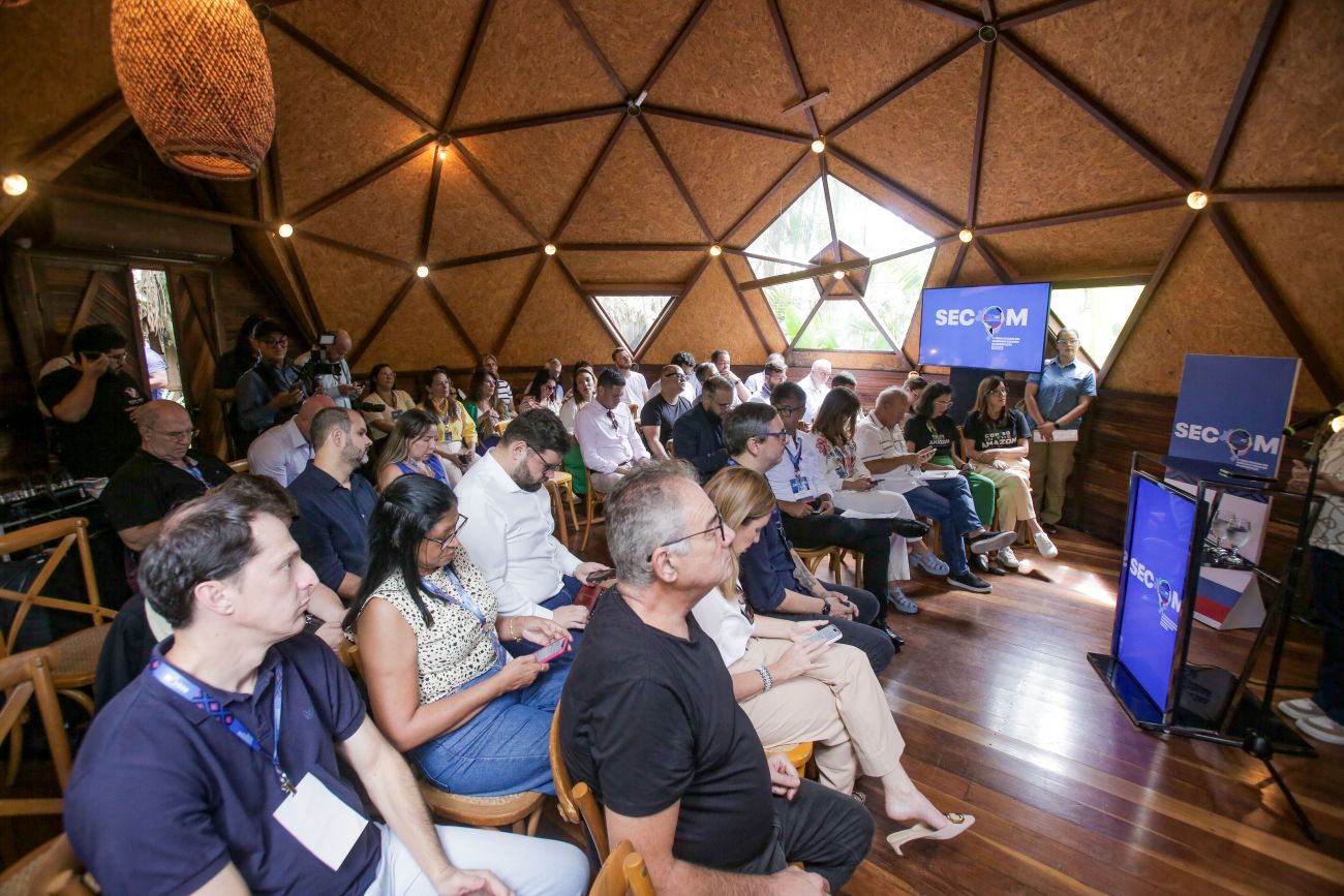 “A gente fica feliz por receber vários eventos no nosso Estado. O anúncio de Belém como sede da COP30 tem atraído olhares diferenciados para a nossa capital, para nosso Estado, por isso a gente está recebendo tantos eventos grandiosos, e hoje ficamos muito felizes em receber os secretários de Comunicação de todo o Brasil, que representam a força da informação pública no nosso país”, disse a vice-governadora.