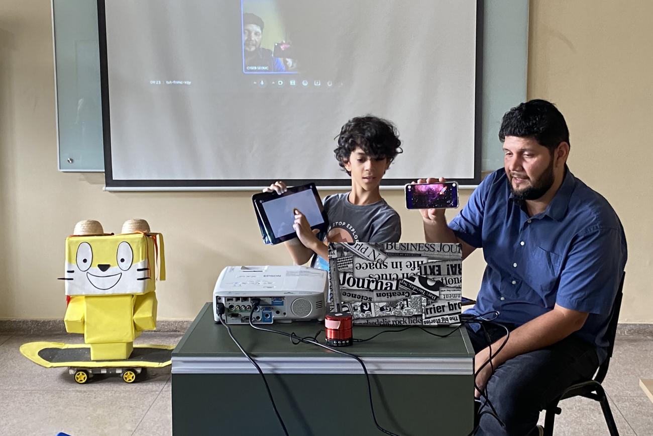 Para desmistificar a ideia de que a programação é difícil, foi convidado um aluno, de 8 anos, Lucas Buenaventura, que demonstrou como é divertido e fácil. “O meu pai me incentivou, ele descobriu e me mostrou o Scratch. Aí a gente começou a mexer e criamos um jogo. Eu acho muito legal e outros estudantes podem aprender, porque é muito divertido. Agora estou tentando fazer um jogo parecido com o ping-pong”, disse o convidado.