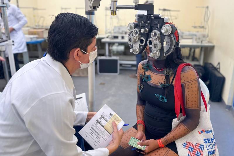 Ao longo da manhã de hoje, a ação voltada aos povos originários contou com mais de 20 serviços gratuitos, como emissão de documentos, atendimento médico, clínico geral, oftalmológico, odontológico, vacinação, testes rápidos para detecção de doenças, auriculoterapia, beleza pessoal, cadastro da agricultura familiar, emissão da carteira nacional de artesanato, além de palestras e oficinas educativas.