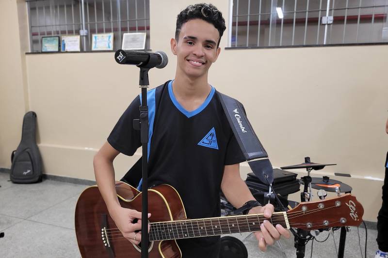 “Estou gostando muito de participar do Clube de Música, para mim, é uma oportunidade de aprimorar o nosso talento. A gente tem a ótima participação do professor Sérgio, que ensina a gente no que precisamos. É algo muito legal, é uma forma da gente ter e conhecer mais sobre a música. Quando eu cheguei aqui na escola e soube do projeto, fiquei muito feliz porque canto e toco e aqui a gente aprende muito, recebe muito conhecimento e ao mesmo tempo consegue relaxar, fazer o que a gente gosta”, finalizou.