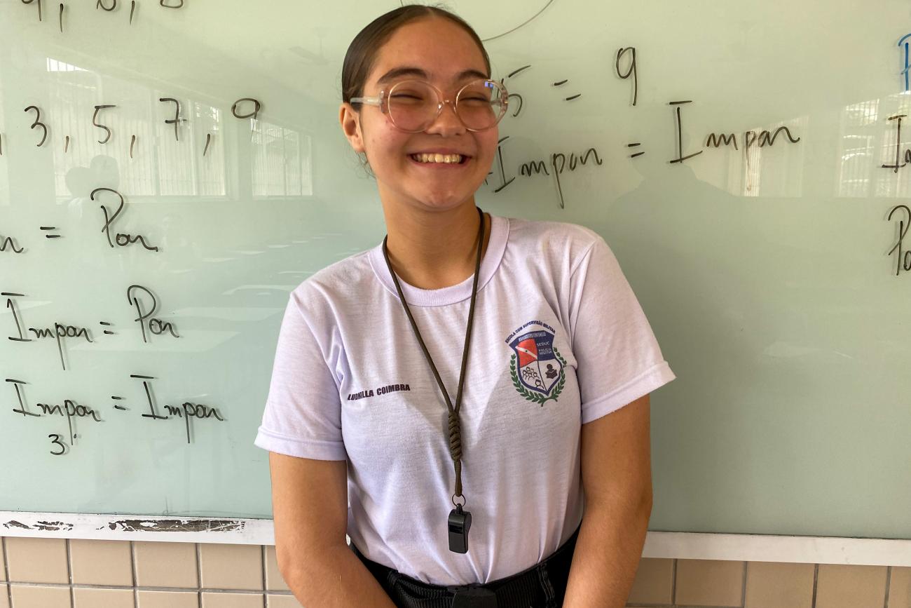 “O que me fez estar no Clube e permanecer nele é o jeito que o professor explica, porque ele simplifica a matemática para a gente, ele não dificulta a nossa vida e isso é importante porque servirá para a minha faculdade, em tirar uma boa nota na OBMEP e no exame do ENEM. As aulas são diferentes entre a sala de aula normal e nesse reforço, porque há uma simplificação nos assuntos”, conta a aluna.