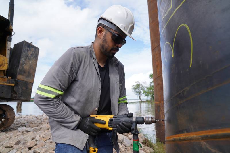 As obras de construção da nova ponte entre os distritos de Icoaraci e Outeiro, pertencentes a Belém, realizadas pelo Governo do Pará, por meio da Secretaria de Estado de Transportes (Setran), estão em pleno andamento, já com avanços significativos e seguindo rigorosamente o cronograma previsto. A fase de execução chegou às fundações nas duas margens. Na margem de Icoaraci também já foi iniciada a mesoestrutura, composta por pilares e travessas de sustentação das vigas.