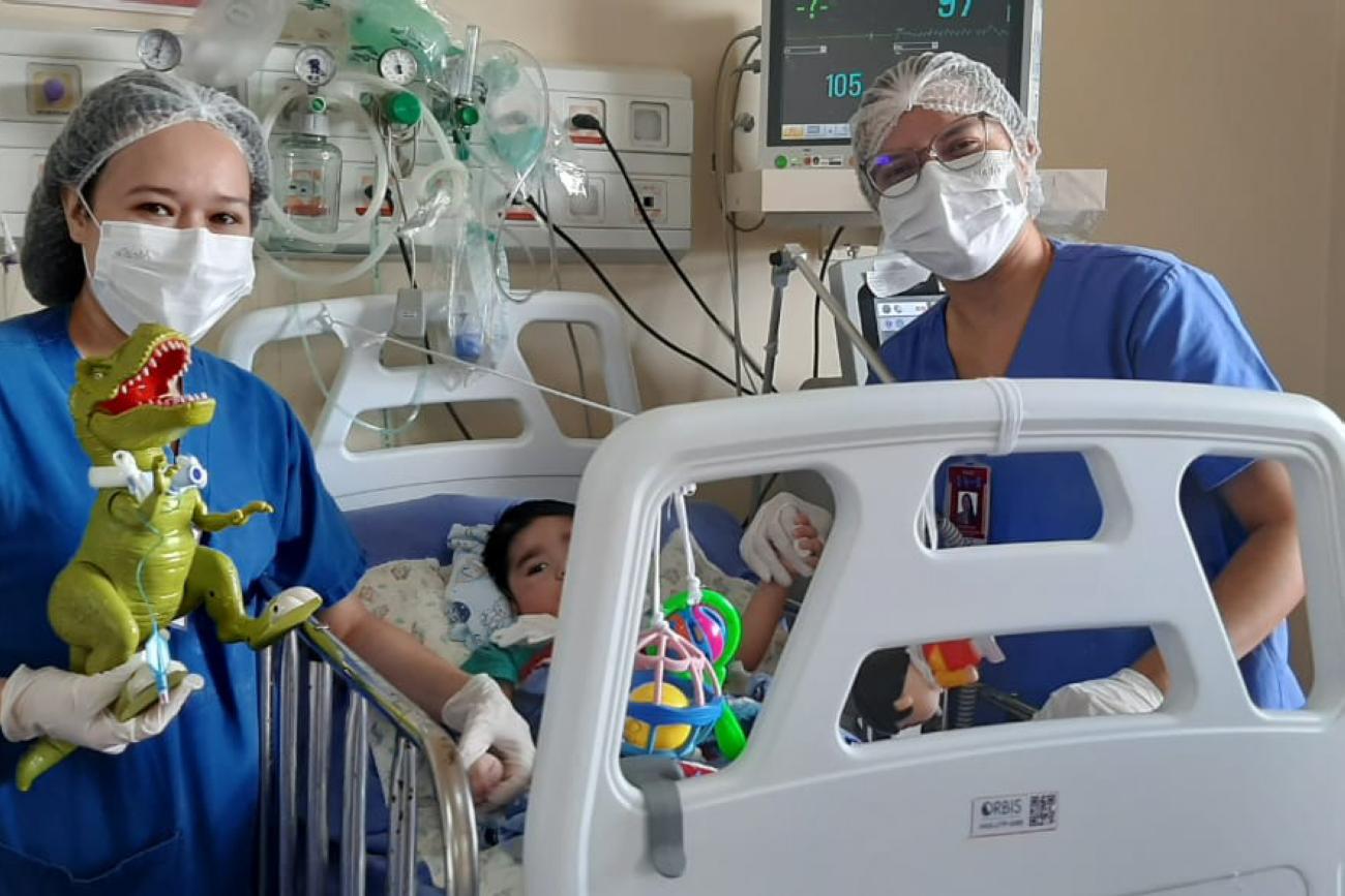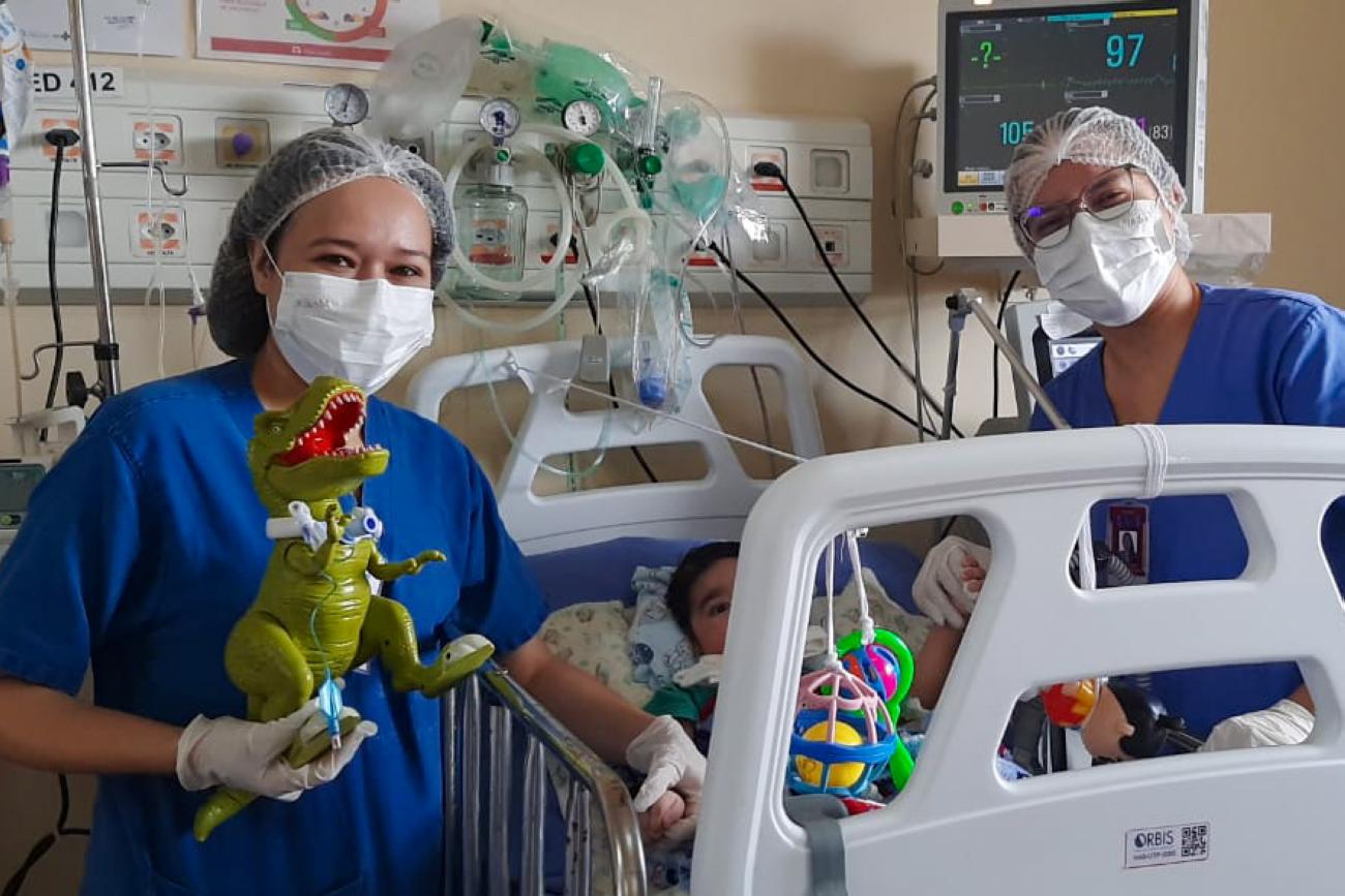 Já imaginou um dinossauro tomando soro nas veias? Ou quem sabe, o Homem-Aranha com uma traqueostomia? Em Belém, no Hospital Regional Dr. Abelardo Santos (HRAS), localizado no distrito de Icoaraci, os bonecos, os carrinhos ou qualquer personagem do imaginário infantil, podem ser protagonistas dos procedimentos invasivos com o uso de dispositivos eletrônicos. Para equipe do hospital, essa é uma das formas de encorajar as crianças a passarem pelas intervenções, na unidade de saúde do governo do Pará, que recorre ao lúdico para auxiliar no bem-estar emocional das meninas e meninos durante a internação.