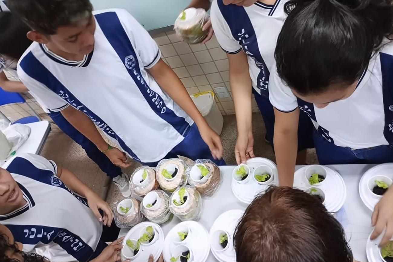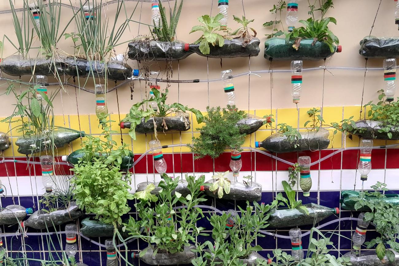 Desenvolvido pelo professor de química Clebson Prazeres, o projeto “Horta suspensa em ambiente escolar: uma proposta sustentável para reuso de garrafas pet e água das centrais de ar-condicionado” tem estimulado ações sustentáveis dentro da escola e trabalhado proposições acerca da Conferência das Nações Unidas sobre Mudanças Climáticas (COP 30), que acontecerá em Belém em 2025.