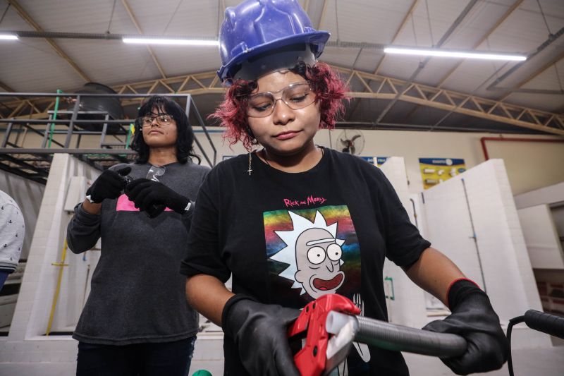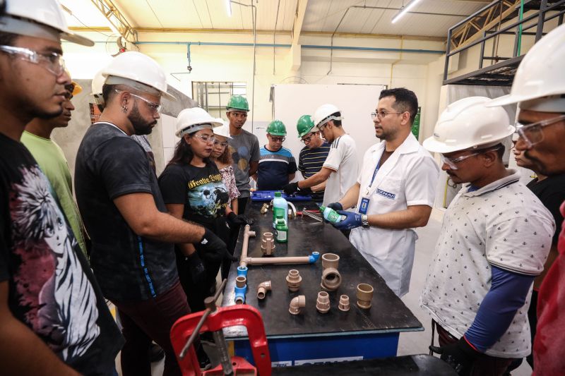 Olhos curiosos acompanham cada movimento e explicação dada pelo professor Paulo César Teixeira sobre tubos e conexões hidráulicas. Entre os alunos, silêncio e concentração totais – um grau de atenção que seria o sonho da maior parte dos professores do Estado, mas que para Paulo César virou rotina, porque ele ensina uma turma de jovens que está de olho no futuro: são alunos do programa Capacita COP 30, projeto do Governo do Estado para qualificar a mão de obra de diversos setores para a Conferência das Nações Unidas que será realizada na capital paraense em novembro de 2025.