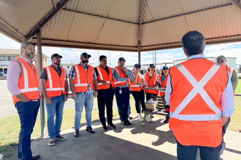 As primeiras visitas ocorreram no frigorífico JBS, empresa mundial, e no Departamento de Agricultura e Pesca do Estado de Queensland, onde a comitiva da Agência de Defesa conheceu todas as estratégias e operações utilizadas por eles para identificar o rebanho, exportados de outros países, exigindo que o trabalho seja eficiente.