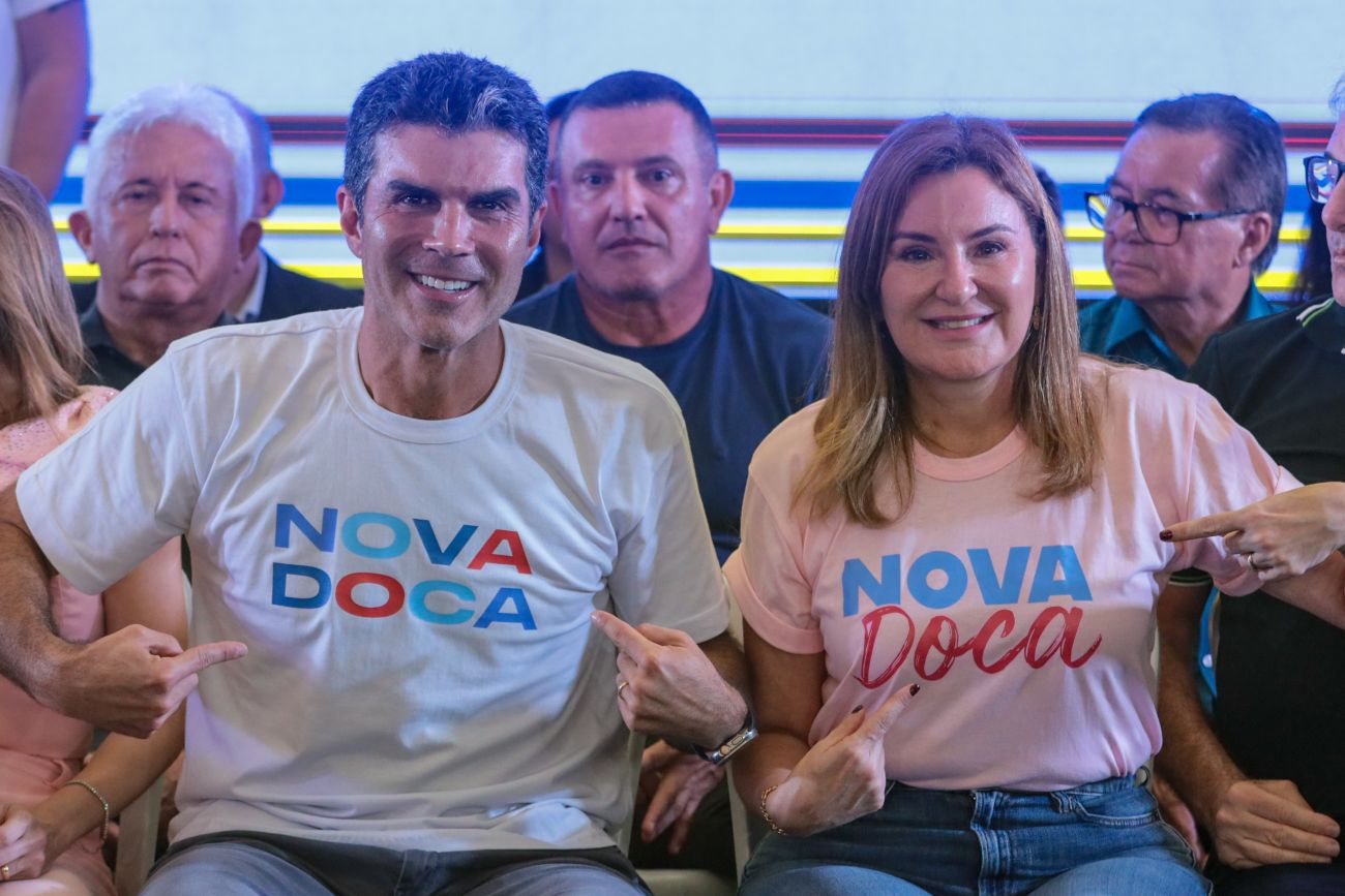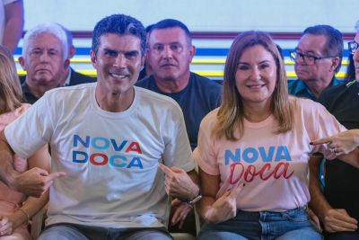 Governador Helder Barbalho, vice-governadora Hana Ghassan e diretor-geral da Itaipu Binacional, Enio Verri, no evento de assinatura da Ordem de ServiçoO governador Helder Barbalho assinou, na noite desta terça-feira (7), a Ordem de Serviço para a construção da Nova Doca, em Belém. Esta é mais uma das obras que serão executadas pelo Governo do Pará visando preparar a capital para sediar a 30ª Conferência do Clima sobre Mudanças Climáticas - COP 30, em novembro de 2025.