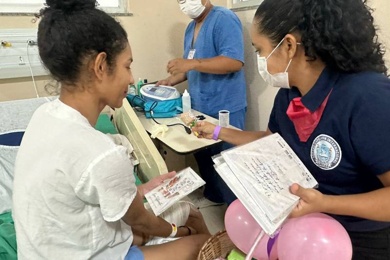A dona de casa Maria Odaiza, de 41 anos, bastante emocionada, foi surpreendida com a ação. "Estou longe de casa, longe dos meus filhos e quando vejo uma homenagem, por um dia tão especial para nós, mulheres e mães, fico muito contente e feliz", disse a paciente. Ela está na unidade para dar continuidade a um tratamento de cálculo renal e agradece as orações e a alegria recebida na unidade.