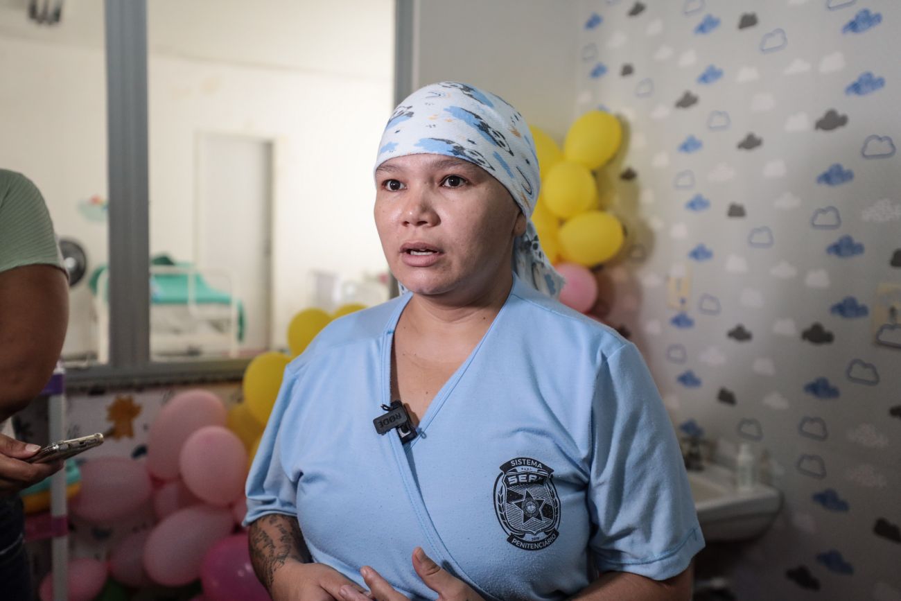 A interna Andreza Gonçalves, que está na UMI há alguns meses, falou sobre a experiência ao lado do filho de 6 meses. “Aqui é um ambiente bom. A gente recebe quatro refeições e tem atendimento médico. É bom ter meu filho perto. Agradeço a oportunidade de poder ficar com meu filho até 2 anos”, disse Andreza.