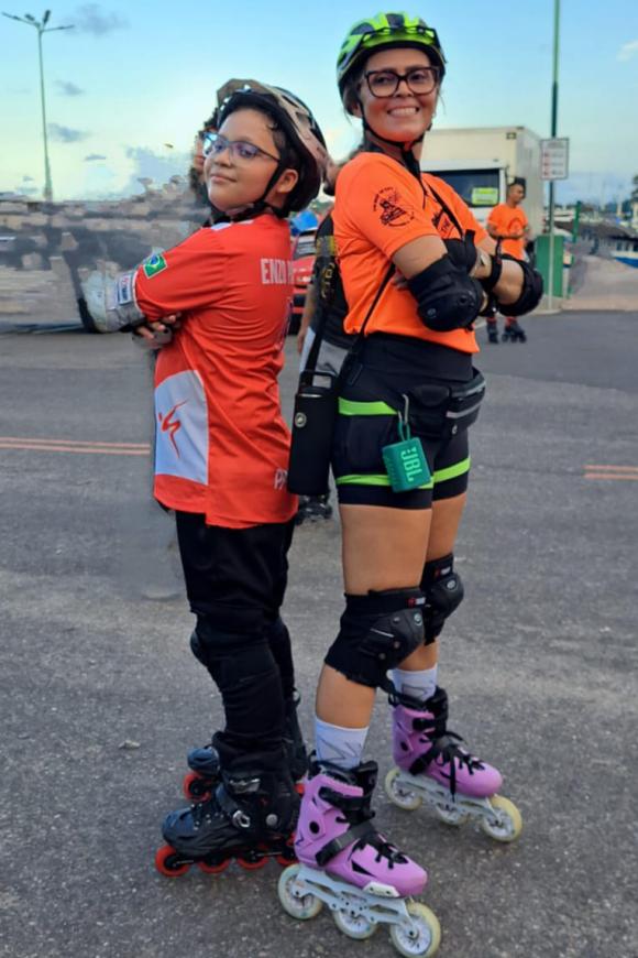 Francinete e Enzo: patinação é atividade realizada nas horas de convivênciaEngenheira que trabalha no campo, fiscalizando a construção das pistas de concreto, Francinete Rocha é mãe do Enzo, 11 anos. Ela avalia que a rotina não é fácil, mas consegue manter o vínculo com o filho no dia a dia. “Fazemos muita coisa juntos. A gente patina, anda de perna de pau, passeia. Tudo que faço, procuro levar ele. Ele tem curiosidade sobre o meu trabalho; é muito inteligente! Pergunta como foi meu dia. A coisa mais maravilhosa é ter uma criança que se importa”, diz a engenheira, extravasando o orgulho de ser mãe do Enzo.