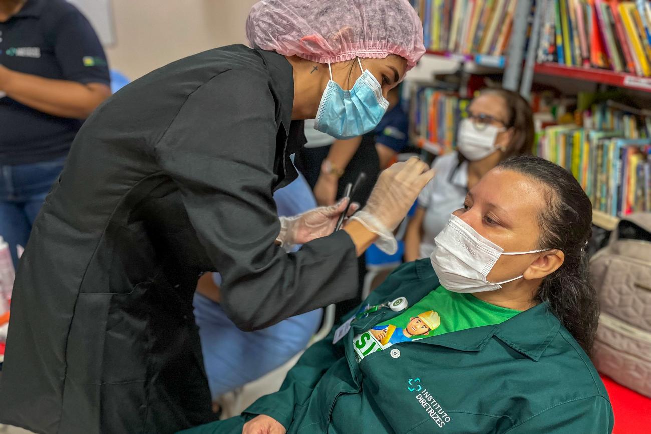 Auxiliar administrativo Erica Pantoja atuou na ação do Dia das Mães no hospital que promoveu sessões de beleza e momentos de distração