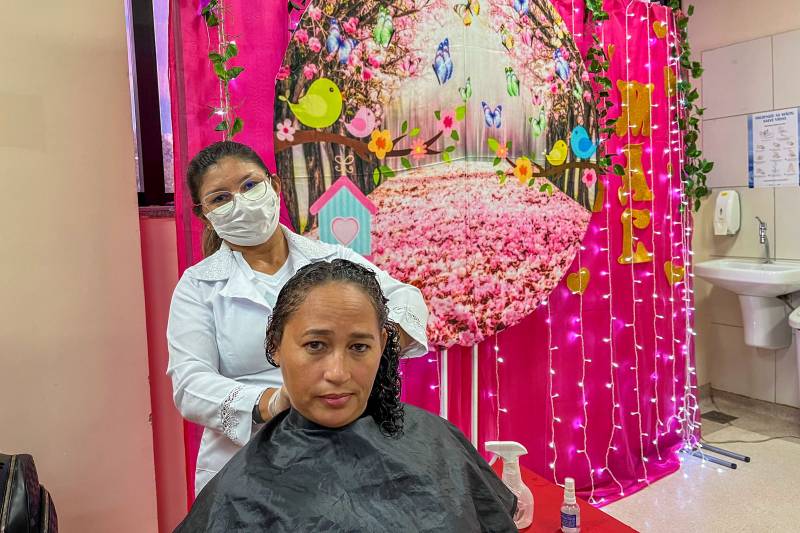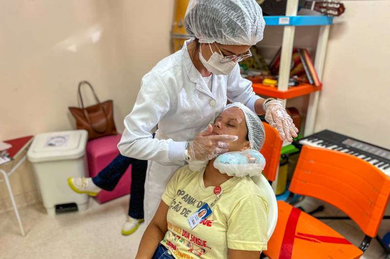 Acompanhantes e colaboradoras do Hospital Oncológico Infantil Octávio Lobo (Hoiol), em Belém, participaram de ações de embelezamento, relaxamento, musicoterapia e entrega de brindes durante toda a semana do Dia das Mães. A programação especial foi realizada em parceria com grupos voluntários, como o Projeto Anjo Gabriel, representado pela auxiliar administrativa Erica Pantoja, 37 anos. Ela sabe bem dos benefícios dessas atividades para quem está em internação, pois, há menos de um ano, acompanhou o filho Gabriel, 11 anos, na luta contra o câncer.