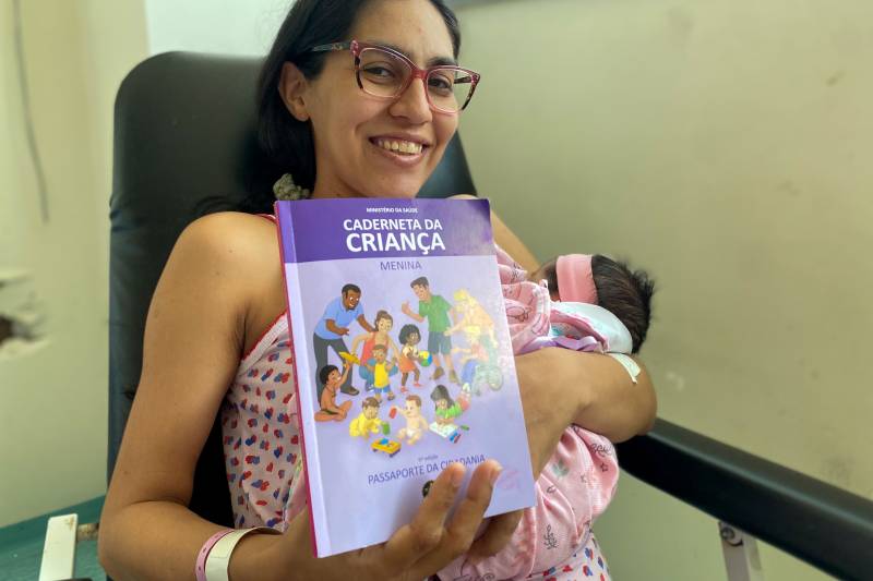 “Nas minhas consultas de pré-natal eu fui informada da importância da caderneta da criança pra tudo né. Para acompanhar o desenvolvimento da minha bebê e ficar atenta às vacinas porque eu sei que seguindo todas as orientações e cuidados, a minha filha vai ter saúde”, afirma a mãe.