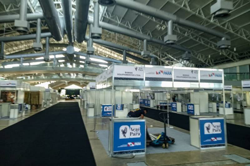 Os preparativos para a programação que abrirá às 14h estão em ritmo final para o Festival Internacional Açaí Pará, no Hangar Centro de Convenções, em Belém, nesta terça-feira (14). Os estandes da exposição dos diversos produtos feitos à base de açaí estão passando pelos últimos ajustes. No total, haverá 104 pontos de exposição com representantes das diferentes Regiões de Integração do Pará.