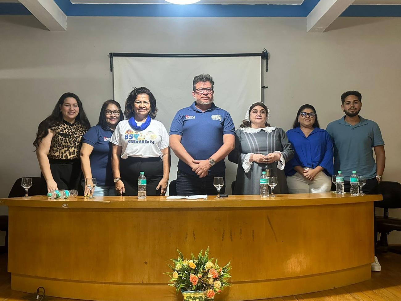 Vice-reitora e enfermeira, Ilma Pastana explanou que a graduação de Enfermagem está presente em 13 municípios pela Uepa e pelo Forma Pará, com professores mestres e doutores, fazendo a Uepa avançar. "Pelos 80 anos, o curso de Enfermagem dá a base para a formação da universidade e os demais cursos. Somos o primeiro curso da instituição, e o primeiro curso que rompe 'bolhas' na estrutura, nas metodologias ativas, nas lutas coletivas. Romper "bolhas" é o tema da programação nacional da 85ª Semana Brasileira de Enfermagem (SBEn), que está ocorrendo neste período. Somos 3 milhões de pessoas no Brasil entre auxiliares, técnicos de enfermagem e enfermeiros. Somos o maior contingente também na área de gestão na saúde. Precisamos nos unir pela causa da enfermagem".