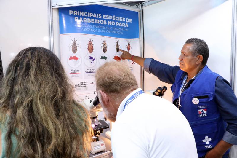 O estande da Sespa é um ponto de apoio e informação, onde os visitantes podem aprender sobre as atividades da Secretaria, como boas práticas na manipulação do açaí e a importância de medidas de segurança para evitar a contaminação do fruto. Técnicos estão disponíveis para esclarecer dúvidas e orientar sobre como minimizar os riscos da transmissão oral da doença de Chagas.