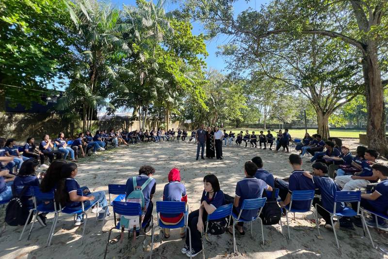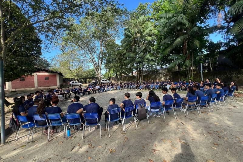 Exemplo disso, é a Escola Estadual de Ensino Fundamental e Médio Suboficial Edvaldo Brandão de Jesus, no bairro do Tapanã, em Belém, onde os estudantes participaram de uma roda de conversa ao ar livre e puderam se expressar e refletir, como explica a diretora Heliana Bitencourt.
