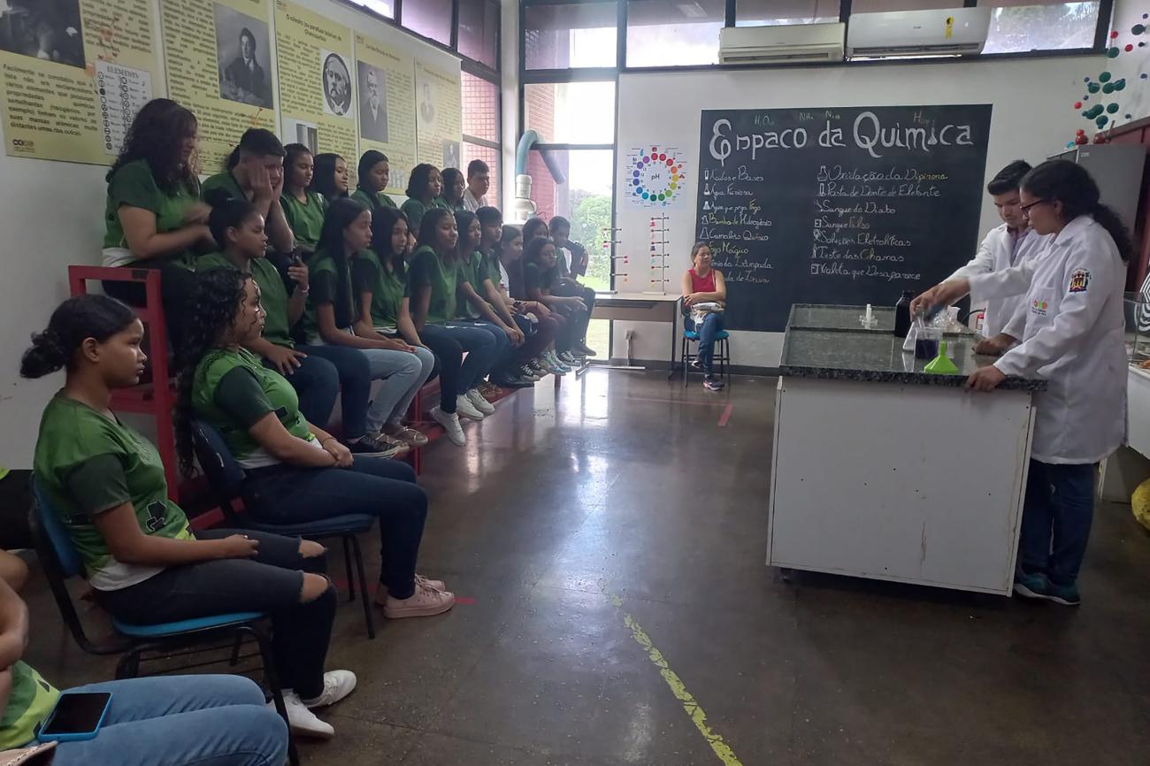 “O que mais me impressionou foi o momento da nossa visita lá ao espaço da Química, onde foram apresentados dois experimentos. Eu achei muito interessante como eles reagem, já que essa área muito me interessa. Participar do projeto é motivador, porque se trata de coisas pouco vistas e que não são comentadas com frequência em nosso dia a dia, então isso torna o projeto interessante e de extrema importância para os alunos”, disse Carla Sofia, aluna da 2ª série do Ensino Médio.