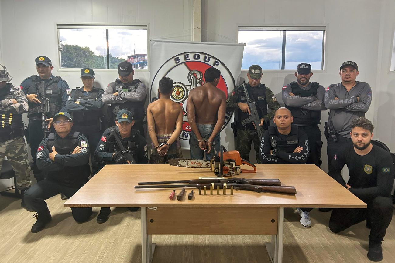 Na tarde desta sexta-feira, 17, equipes de policiais que atuam na Base Fluvial Integrada de Antônio Lemos, instalada no município de Breves, realizaram a prisão de dois homens por ameaça, posse e porte ilegal de armas. A ação faz parte das atividades integradas executadas na Base Fluvial, coordenada pela Secretaria de Segurança Pública e Defesa Social (Segup).