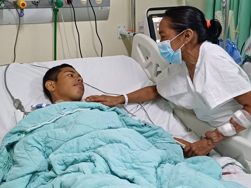 Mirian Cardoso conversa com o filho Manoel Rayan Cardoso dos Santos, de 13 anos, paciente renal Referência - Desde 2016, a unidade já realizou 112 transplantes renais, sendo 54 intervivos - quando o doador é geralmente parente do transplantado - e mais 58 de doadores falecidos.