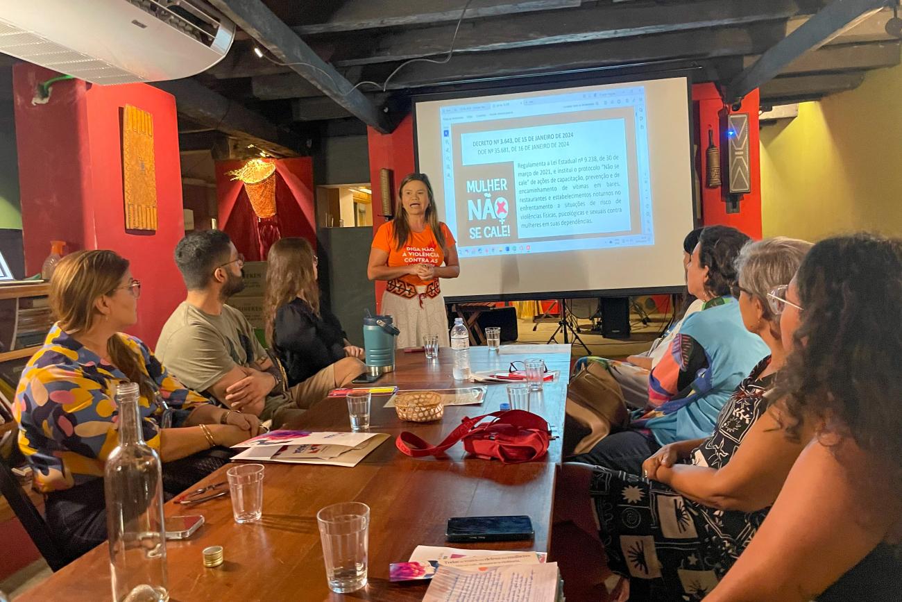 Com o intuito de informar, esclarecer dúvidas e capacitar pessoas que trabalham em estabelecimentos noturnos, a Secretaria de Estado das Mulheres (Semu), participou, na noite da segunda-feira (20), de uma capacitação com base no protocolo 'Não se Cale'.