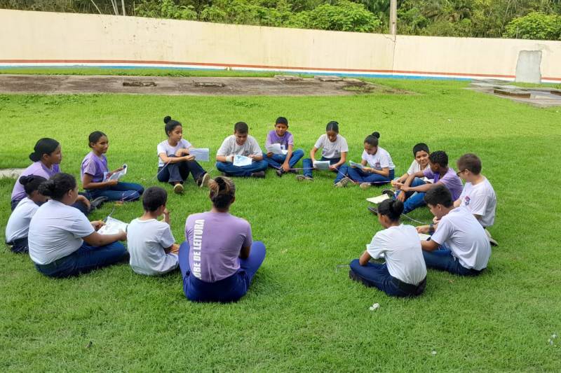 Na Escola Irmã Stella Maria, em Abaetetuba, é trabalhado o ‘Projeto - Leitura e Escrita’, iniciativa em parceria com a Supervisão Militar Escolar (Sume). O objetivo é proporcionar aos estudantes também do 6º ao 9º ano do Ensino Fundamental, com dificuldades em interpretação e produção textual, um contato maior com os livros, fora do contexto de sala de aula. Com encontros semanais, os alunos participam de leituras de fábulas, contos, crônicas e poemas, oficinas, atividades lúdicas e dinâmicas, sempre com uso de exemplares de livros que serão lidos e explorados durante o desenvolvimento do projeto.