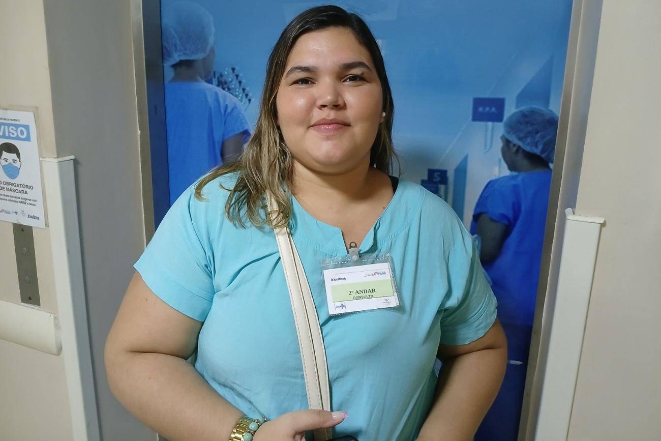 Paciente Daniela Lira, 31 anos, da cidade de Ananindeua, é paciente do “Programa Obesidade Zero”Aprovação - Daniela Lira, 31 anos, de Ananindeua, é paciente do “Programa Obesidade Zero” e está na fase de pré-operatório para a cirurgia bariátrica. Ela disse que já está fazendo as consultas multiprofissionais, para chegar no peso ideal para realizar o procedimento. “Estou alinhando dieta com exercícios físicos, que fizeram eu perder peso para a cirurgia. Eu já cheguei a pesar 114 Kg e agora já estou com 103 Kg, e já tem algumas roupas no meu guarda-roupa que vou doar”, comentou a paciente que elogiou a iniciativa do hospital.