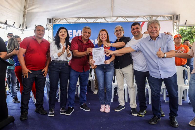 Hana Ghassan, acompanhada de secretários do Executivo, deputados, vereadores, autoridades locais e da comunidade, falou dos avanços que o Governo do Pará levará à cidade da Região de Integração Guamá a partir da contratação de mais asfaltamento.