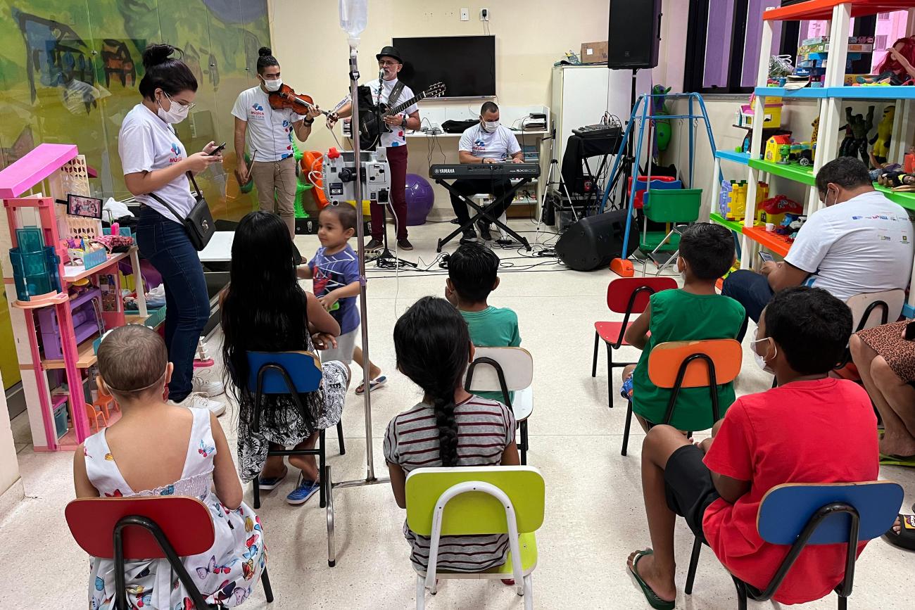 Durante o processo de hospitalização de crianças, as atividades lúdico-pedagógicas são utilizadas com intuito de amenizar a aflição, a ansiedade e o estresse. A música configura entre as ferramentas de humanização mais diferenciadas por conseguir reunir o brincar e o lúdico e contribuir para o desenvolvimento psicomotor, emocional, cognitivo e social dos pacientes. Em Belém, o Hospital Oncológico Infantil Octávio Lobo (Hoiol) valoriza a arte e a cultura como um recurso para promover interações e vivências no ambiente hospitalar.