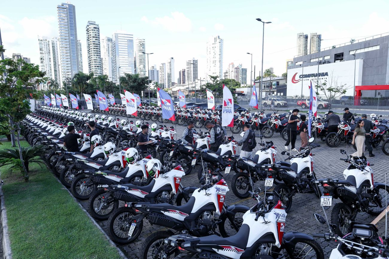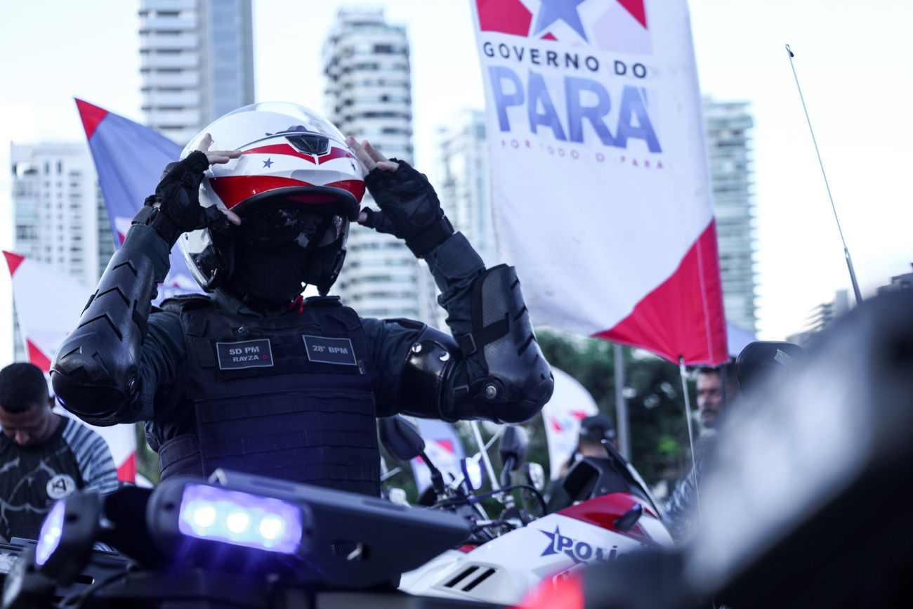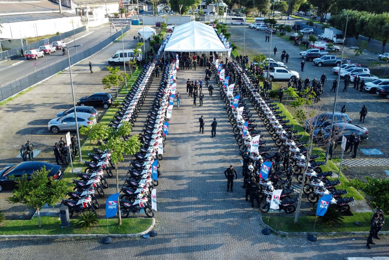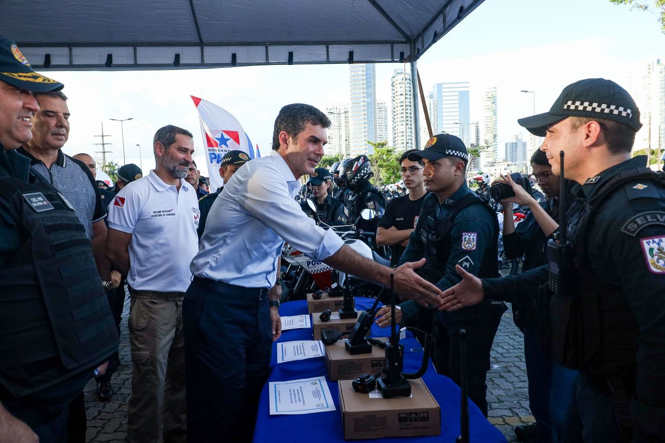 Motocicletas, radiocomunicadores, armamentos e outros acessórios fazem parte do conjunto de entregas feitas nesta terça-feira (28), pelo governador Helder Barbalho em evento no Parque Urbano Porto Futuro, em Belém, à Polícia Militar do Estado do Pará (PM-PA). O investimento vai reforçar a atuação do policiamento nos municípios paraenses.