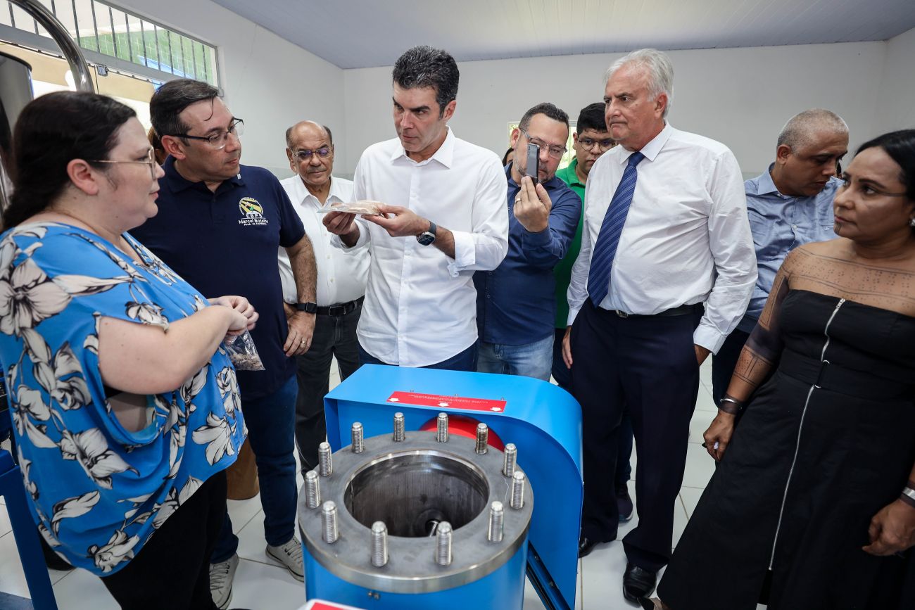 “A partir da pesquisa que está sendo feita aqui, nós estamos fazendo celulose de caroço de açaí. Portanto, aquilo que eventualmente é feito com outras espécies, agora com o açaí nós podemos agregar valor, gerar oportunidades e gerar renda para quem vive na Amazônia. Vamos continuar trabalhando agora para fazer com que esse protótipo possa ganhar escala e possa ganhar mercado. Com isso a gente gera emprego, gera renda, com bioeconomia, com bionegócios, com biomateriais para fazer com que a nossa floresta possa ter valor”, informou o governador.