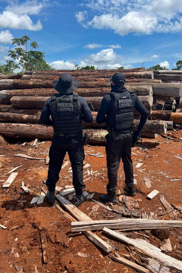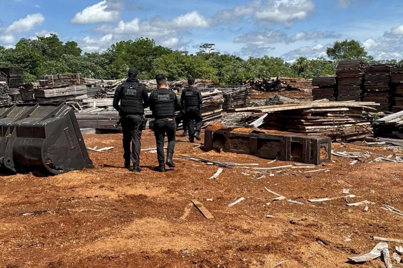 “Quando há muitos alertas de desmatamento no monitoramento por satélite, as madeireiras que operam na ilegalidade, de forma clandestina, estão sempre com pátio cheio de madeira ilegal. São esses criminosos que fazem a receptação de madeiras retiradas de local de Floresta Amazônica, causando imenso impacto ambiental e climático para a população”, explicou o delegado Iuri Castro da Força Tarefa Amazônia Segura da PCPA.