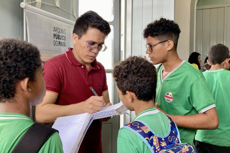 “É uma alegria imensurável receber os servidores do Arquivo Público do Estado em Marapanim, que é uma cidade com uma representatividade cultural e histórica gigantesca. Hoje a gente contou com a participação massiva de estudantes das escolas municipais, estaduais que estiveram conosco folheando os documentos, e levantando dúvidas, curiosidades. Algumas das minhas turmas estiveram aqui, inclusive cobrei um trabalho, e espero que isso possa gerar frutos no aprendizado deles, mas também como agentes, sujeitos históricos, que habitam a cidade.” Afirma o professor Célio Velasco.