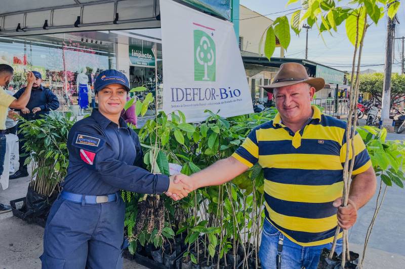 Ação conduzida pelo Ideflor-Bio entregou mais de 300 mudas de espécies nativas como o mogno, jatobá, ipê roxo, gameleira, paricá e sapucaia