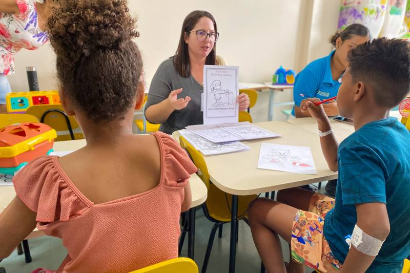 Yasmin Lobato, de 4 anos, internada há mais de um mês para tratamento no hospital, também esteve na programação. Para a mãe, Larissa Lobato, 27, além de aprender um pouco mais sobre a importância da preservação do meio ambiente, a atividade fortalece, ainda mais, a qualidade do que é entregue na unidade.