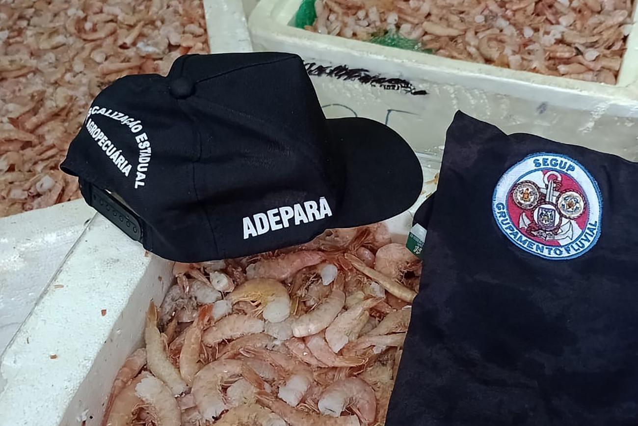 Após fiscalização rotineira a embarcações que trafegam pelos rios da Amazônia, agentes agropecuários da Agência de Defesa Agropecuária do Estado do Pará (ADEPARÁ), juntamente com agentes de Segurança Pública que atuam na Base Fluvial Integrada de Antônio Lemos, apreenderam uma carga de aproximadamente uma tonelada de camarão.