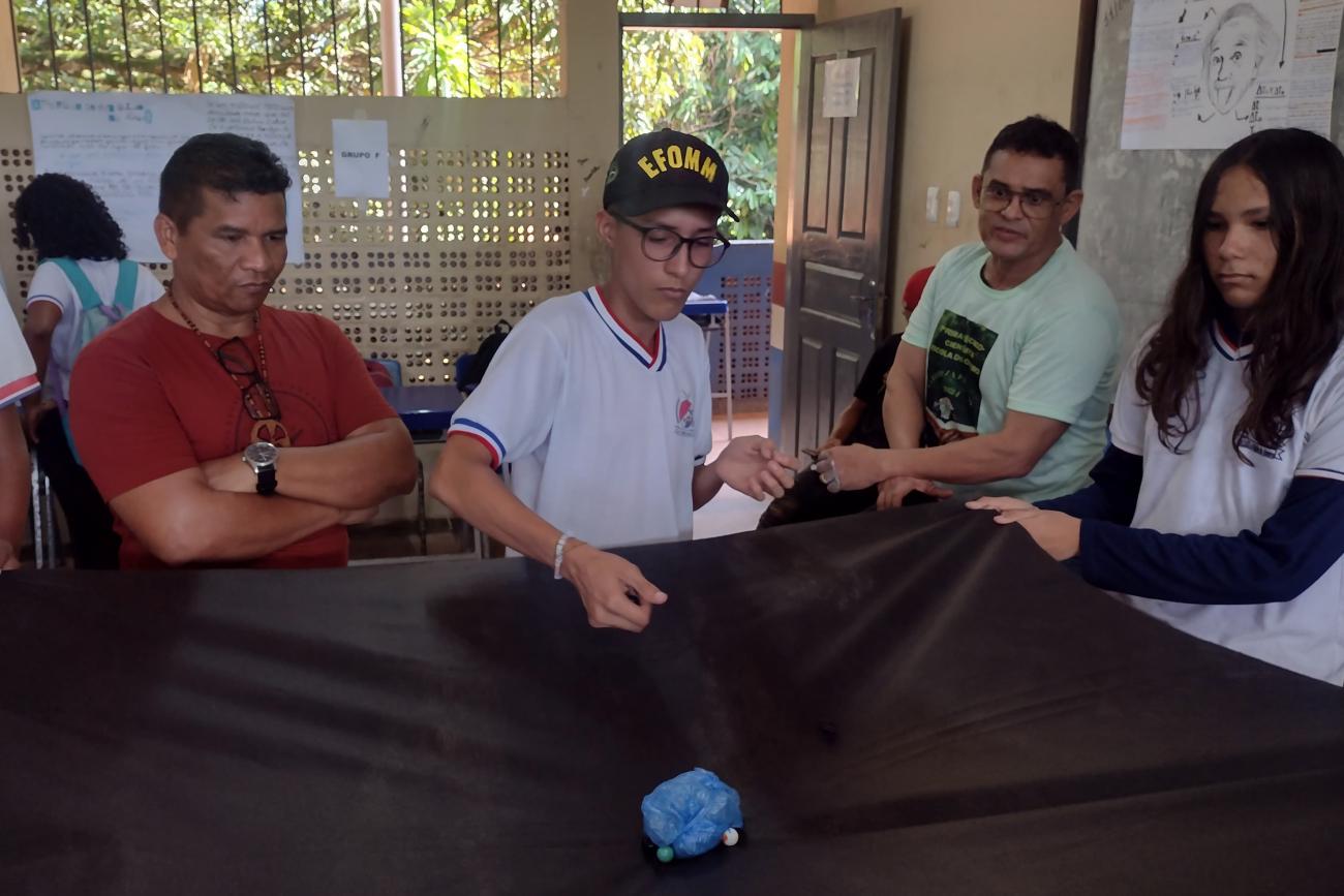 Estudantes da Escola Estadual de Ensino Fundamental e Médio do Outeiro, distrito de Belém, participaram da 1ª Feira Técnico-científica da instituição e puderam expor experiências químicas, pesquisas, maquetes e outros trabalhos escolares, nesta quarta-feira (12). O tema abordado foi “Natureza em Foco”, alinhado ao componente curricular obrigatório de Educação Ambiental, implantado pela Secretaria de Estado de Educação (Seduc) em todas as escolas da rede estadual de ensino.