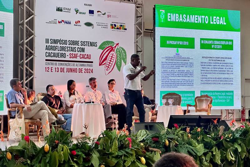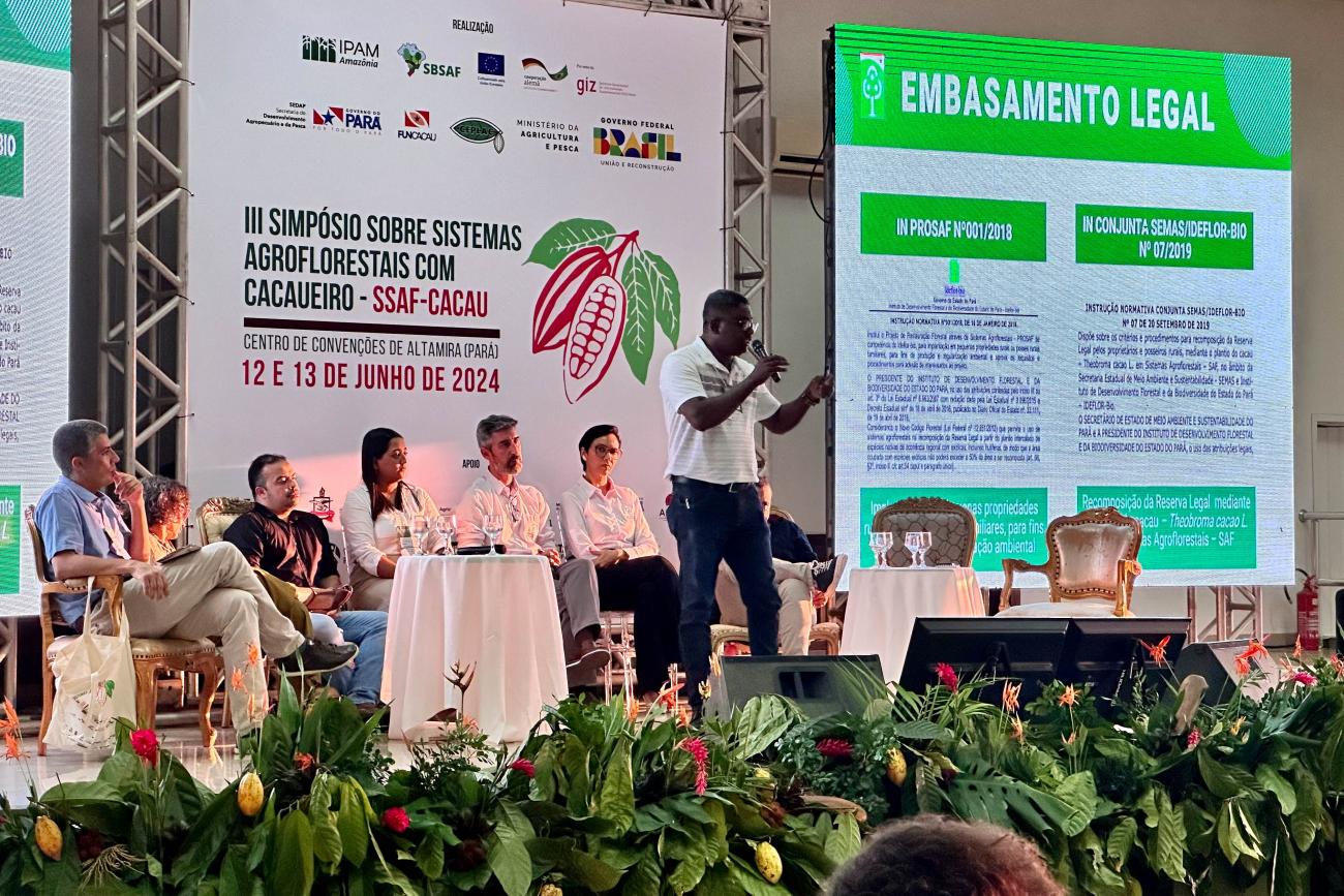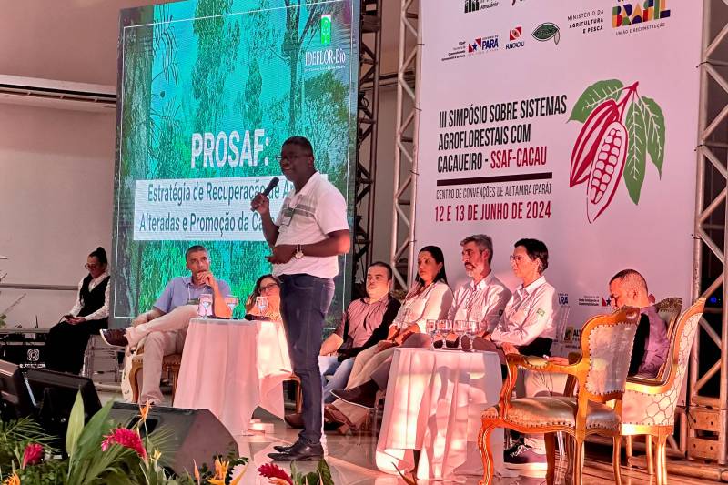 Protagonismo - Um dos destaques foi a participação do órgão ambiental do Governo do Pará. O gerente do Escritório Regional do Xingu do Ideflor-Bio, Israel Oliveira, apresentou no painel “Mercados, inclusão produtiva e estratégias para expansão da cacauicultura em SAFs na região da Transamazônica”, abordando as ações e resultados do programa PROSAF.